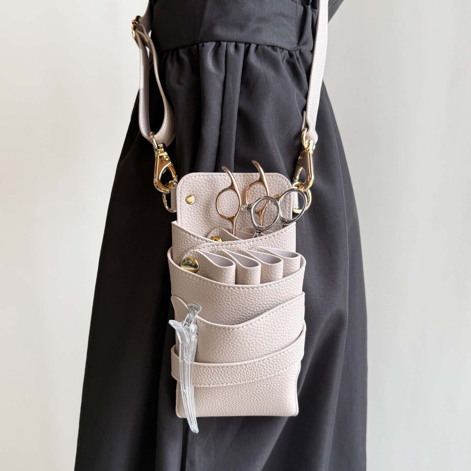 - > 【GH特典付き】数量限定 シエーナ no,401 ライトグレージュ(シボ加工)Go金具 4〜6丁入れ シザーケース