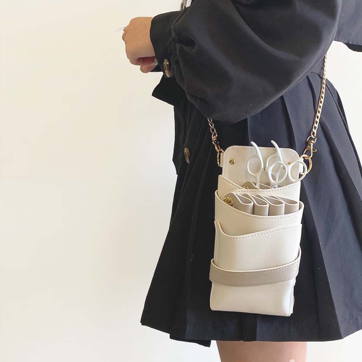 - > 【GH特典付き】LuxuryStyle 数量限定 シエーナ チェーン付き アイボリー×ライトグレー 4〜6丁入れ シザーケース