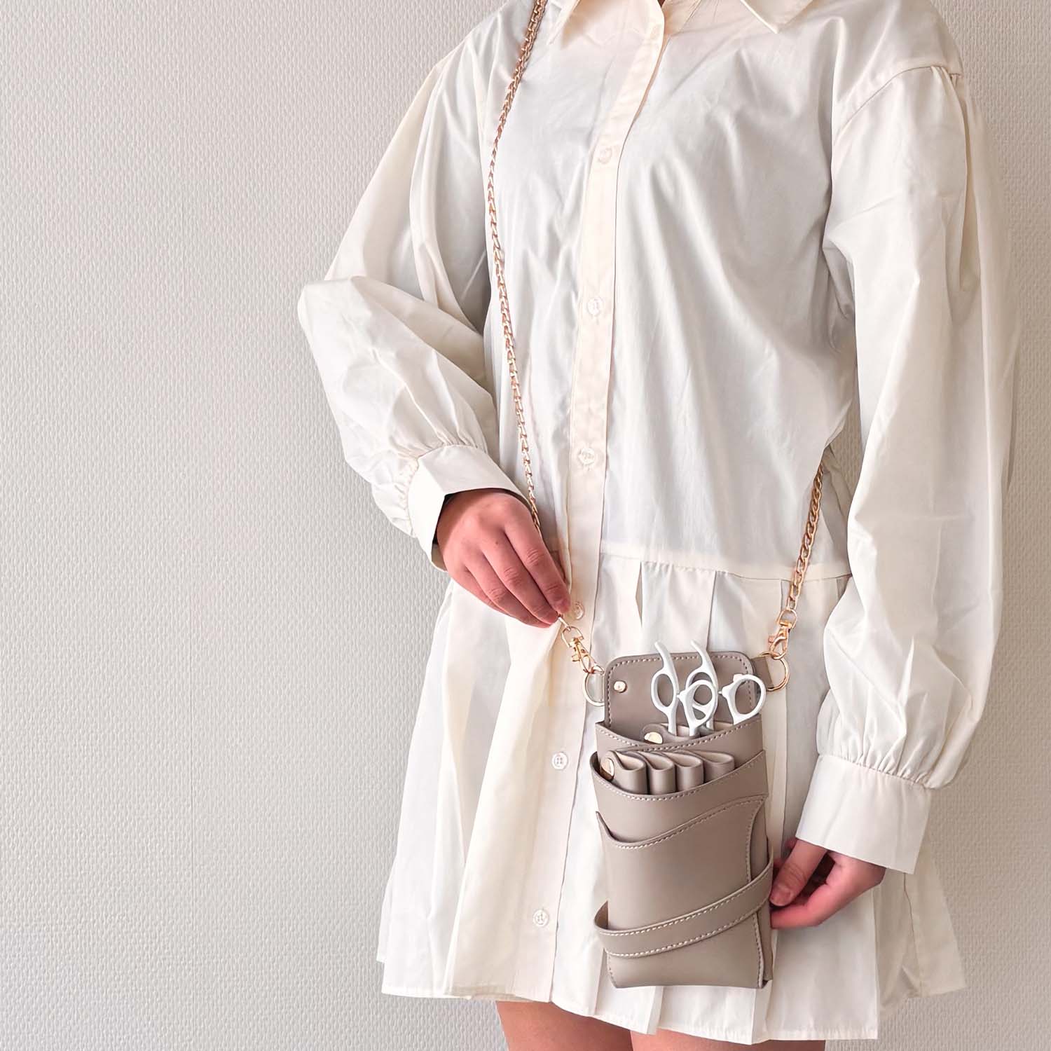 - > 【GH特典付き】LuxuryStyle 数量限定 シエーナ チェーン付き グレージュ 4〜6丁入れ シザーケース